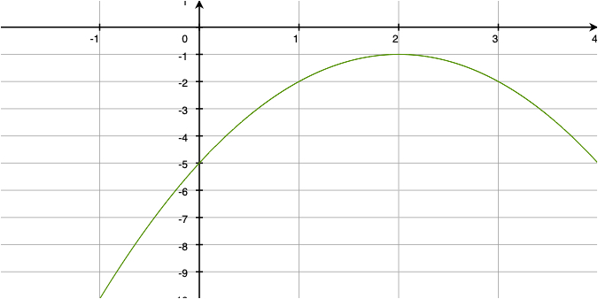 Då koefficienten framför x2 är negativ (i detta fall -1) så har vi lärt oss att kurvan har ett maximum och ser ut som en ledsen mun. Vi ser att maximumpunkten ligger under x-axeln så därför har denna andragradsfunktionen inte heller några reella nollställen eftersom kurvan aldrig skär x-axeln.