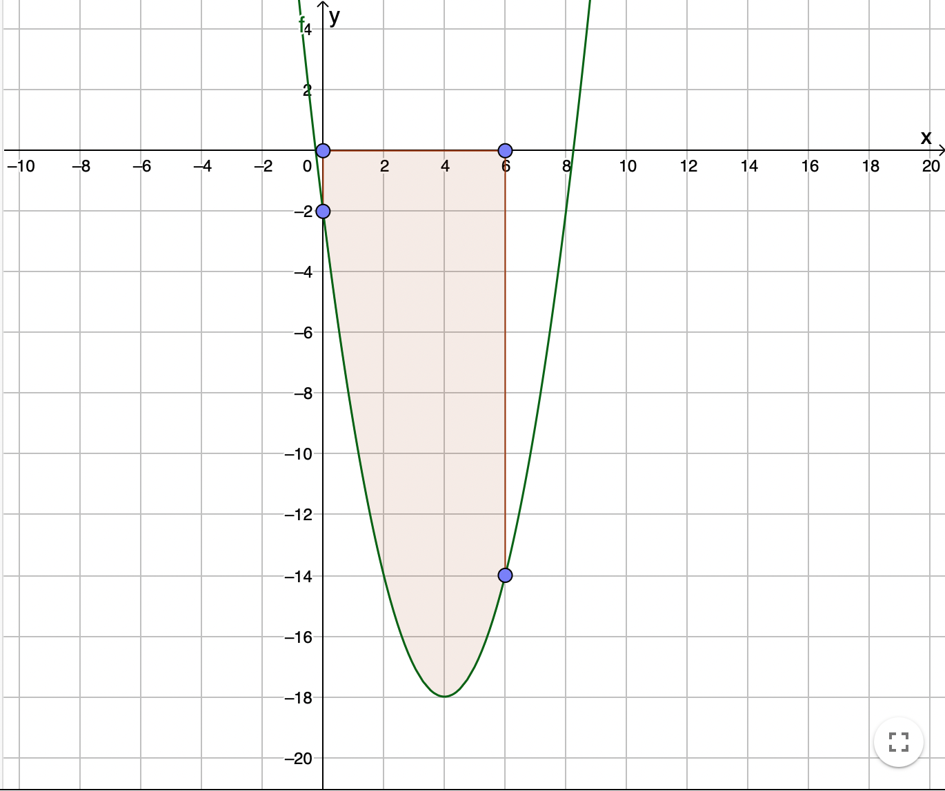 Nedan ser vi grafen för \(f(x) = x^2-8x -2\), beräkna den skuggade arean.