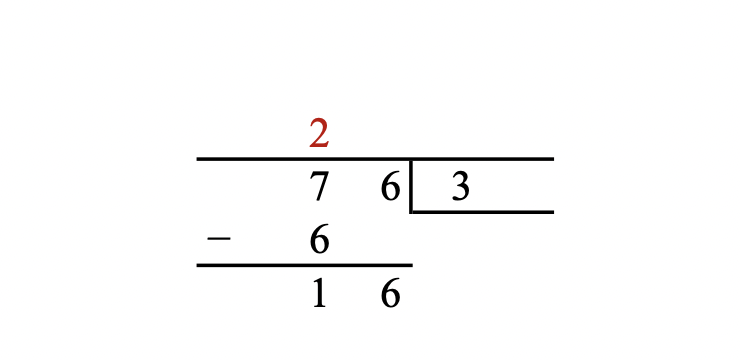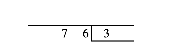 Nu vill vi dividera 76 med 3. Vi ställer upp divisionen med liggande stolen så här: