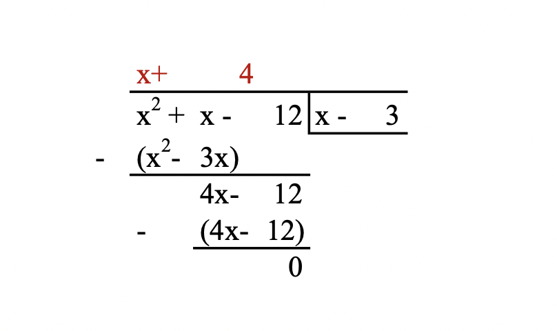 $$\frac{x^2+x-12}{x-3}= x+4$$