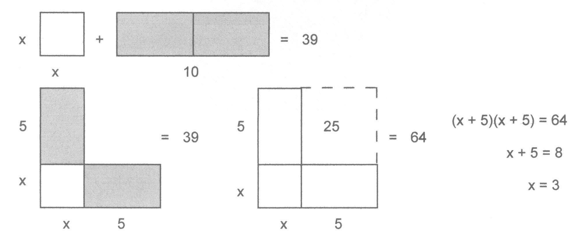Även om detta var metoden som användes i Al-Jabr på 800-talet fanns inte notationer som ”x” på den tiden och i boken beskrevs ekvationerna med ord i stället.