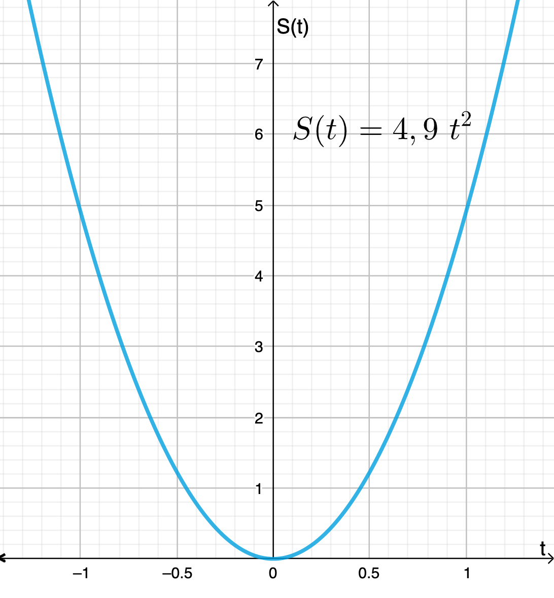 Ovan ser vi grafen till funktionen för ett fritt fall skissad i ett koordinatsystem. I detta fall är funktionen en potensfunktion med konstantvärdena C = 4,9 och n = 2.