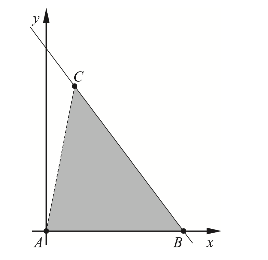 Triangeln ABC har hörnet A i origo, hörnet B på den positiva x-axeln och hörnet C i den första kvadranten. Hörnen B och C ligger på den räta linjen \(y= -1,5x +12\). Se figur.