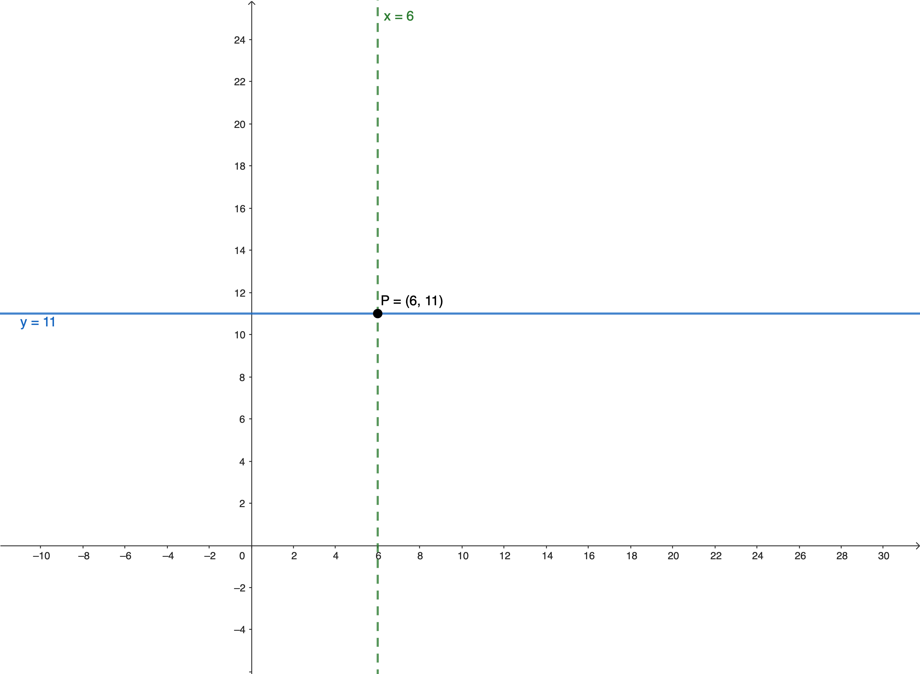 Vi tar hjälp av GeoGebra och ritar in punkten P och linjerna som begränsar R och Q.