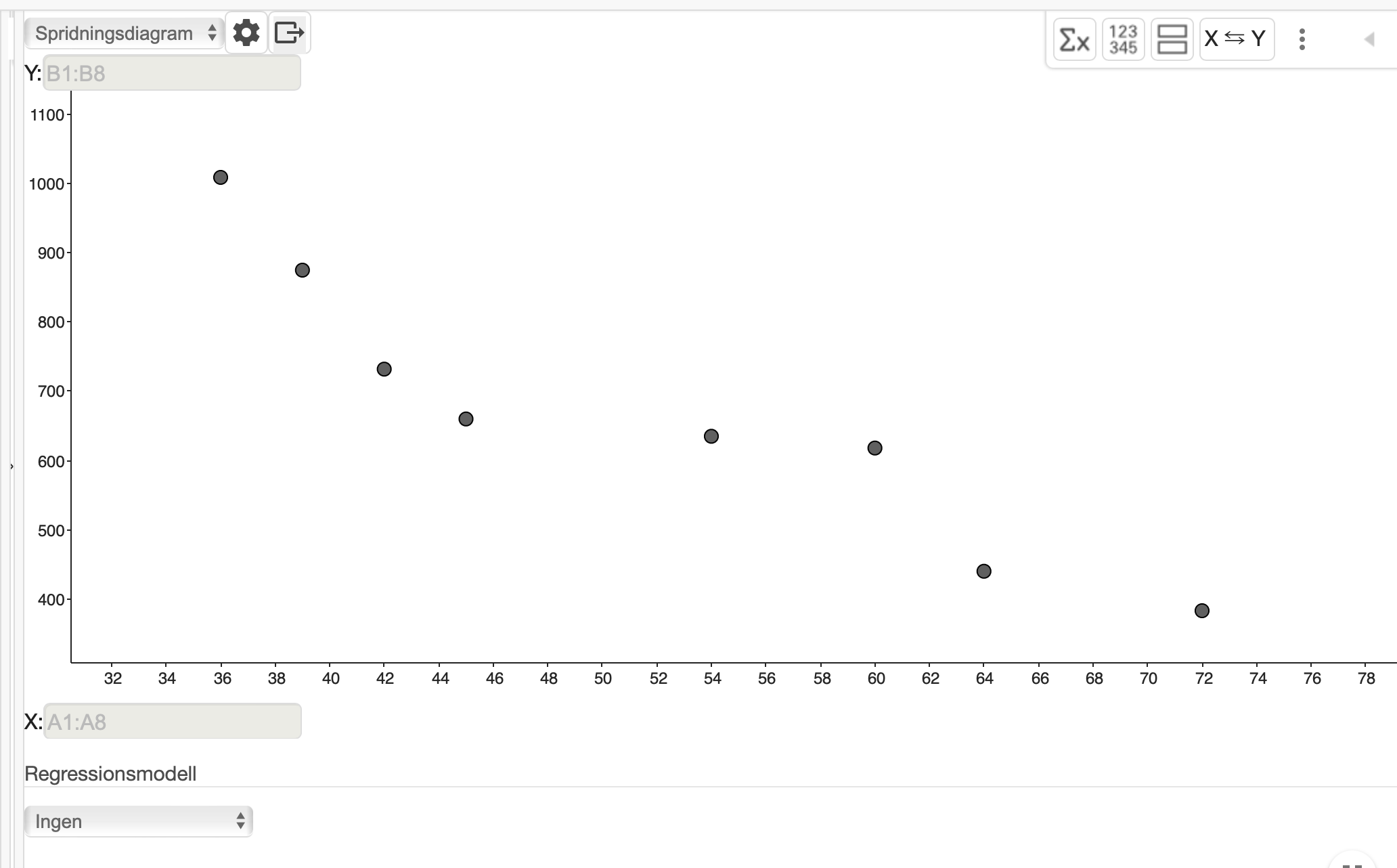 Då får vi upp ett spridningsdiagram som ser ut som följande: