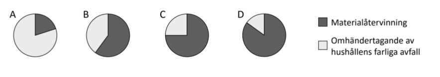 En kvarts cirkel = 25 %, alternativ D är det enda som visar farligt avfall mindre än 25%.