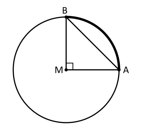 Vi tittar på de två påståendena var för sig. Anta att cirkeln har radien R, det är denna vi söker i första hand.