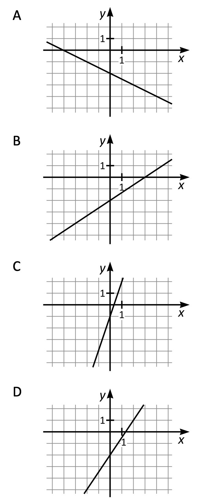 Vi kan även strunta i grafen B, eftersom linjen har k-värde (\(k = \frac{2}{3}\)).