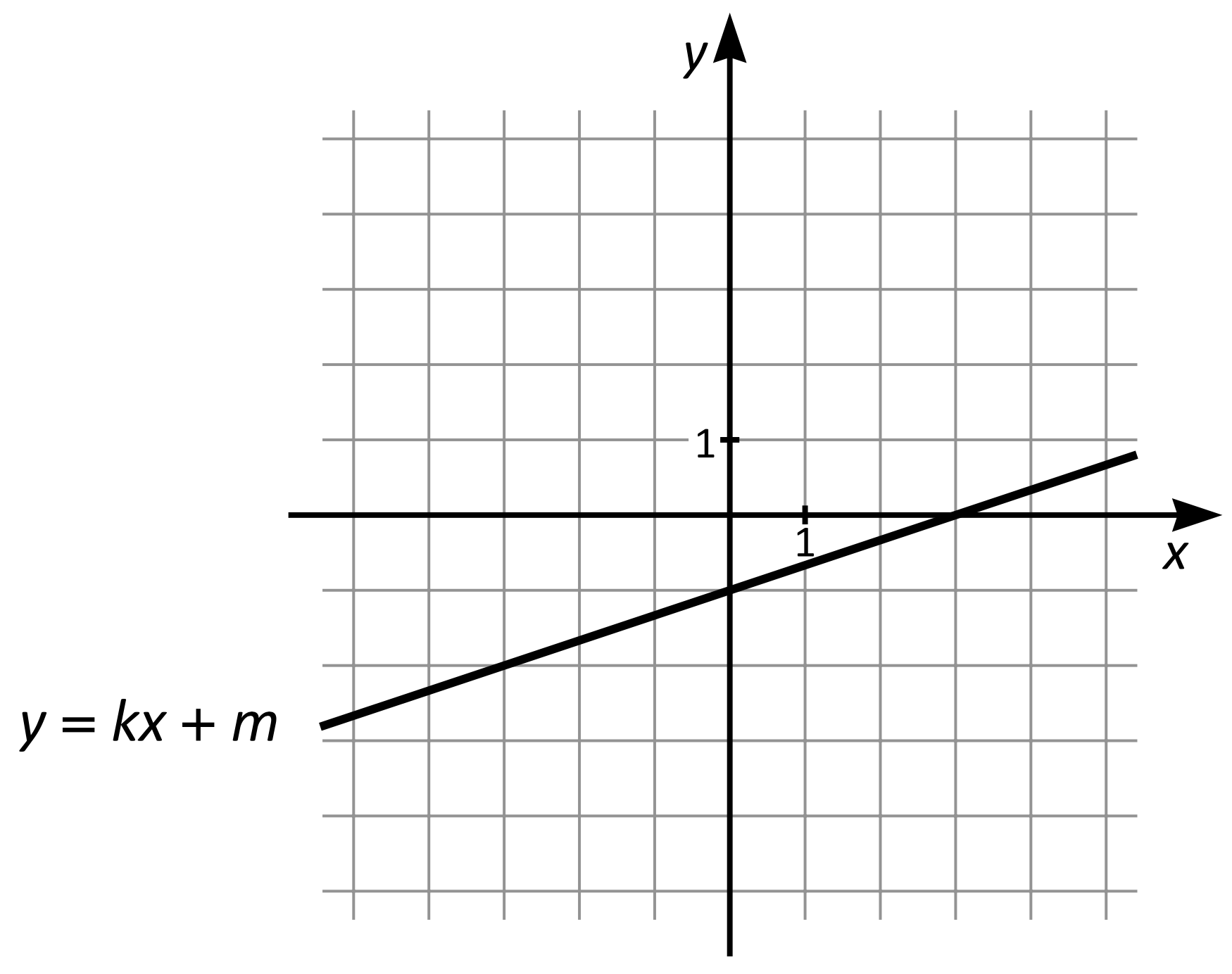 2. Linjen \(y=kx+m\) är inritad i koordinatsystemet nedan. Vad är riktnings koefficienten k för linjen?