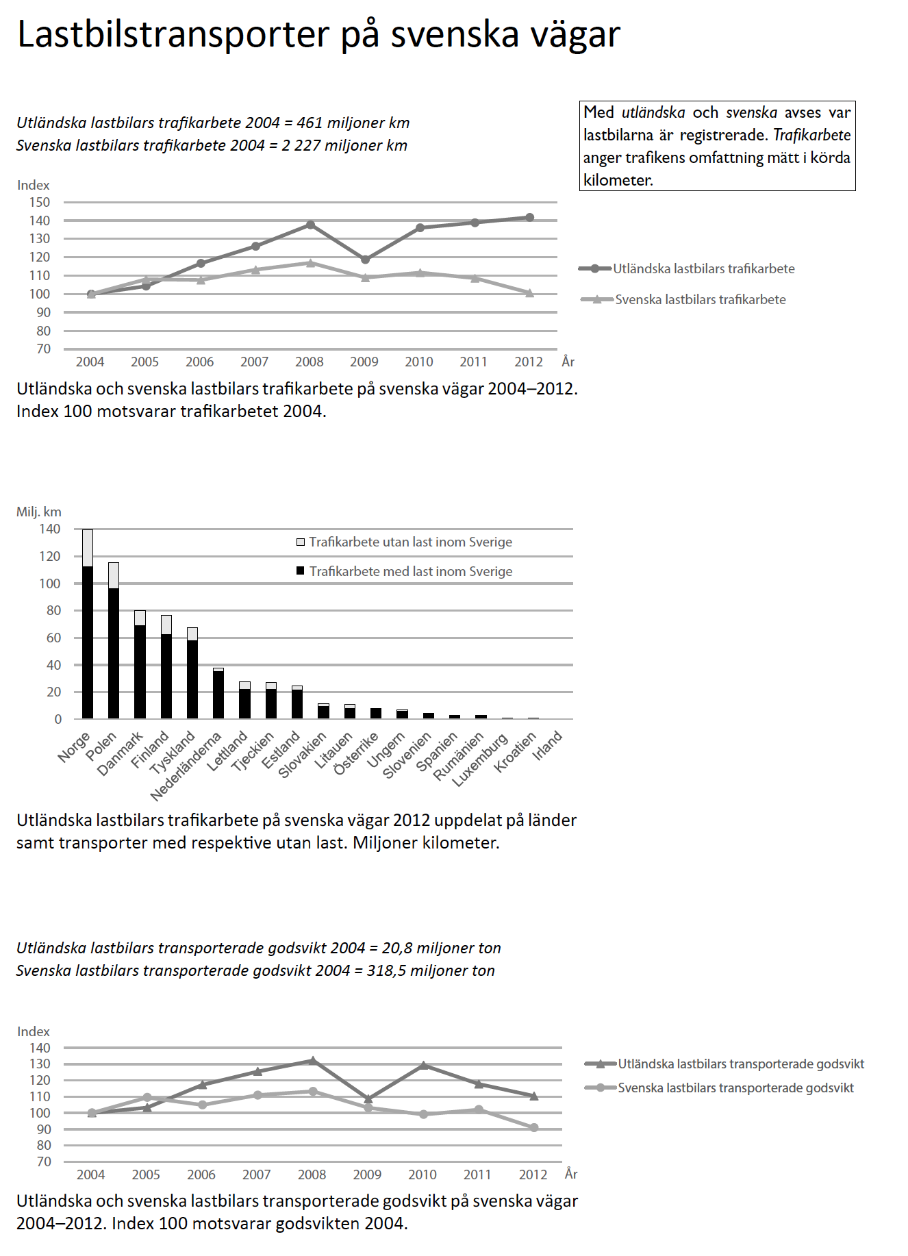 Titta på trafikarbetesdiagrammet för 2012. 202 är index för svenska transporter 100 och index för utländska transporter 140. Index 100 för svenska transporter=2 227 miljoner km