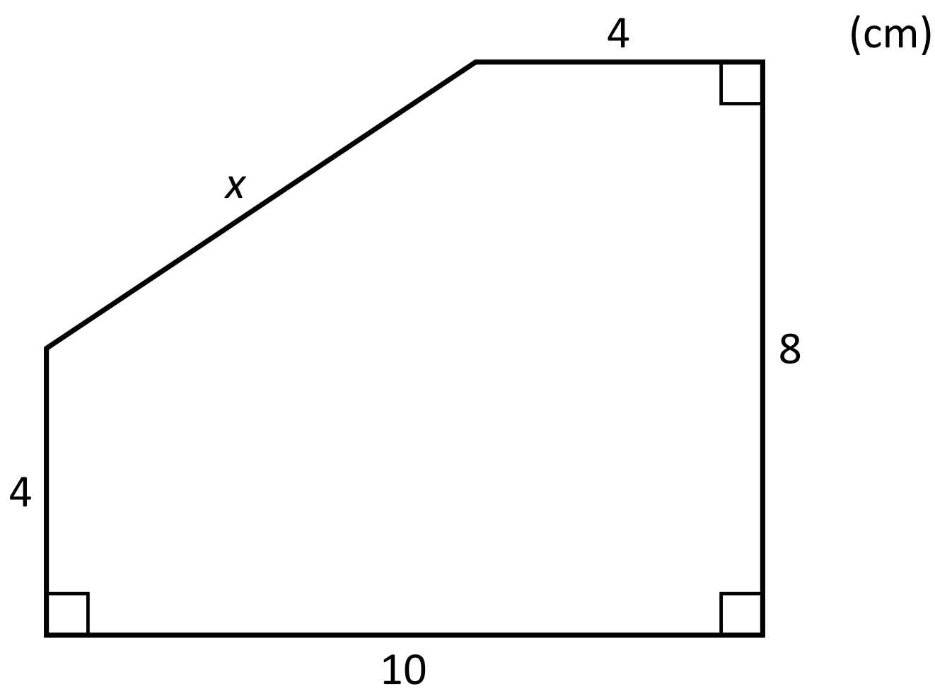 Beräkna \(x\) med pythagoras sats: \(x^2=6^2 + 4^2 = 52\)