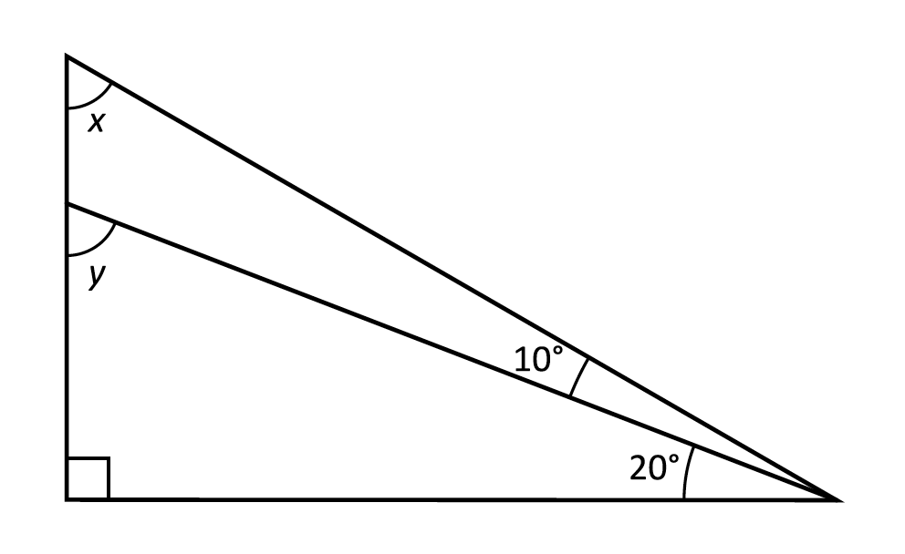 Summan av de övriga vinklarna(förutom rätt vinkel) i en rätvinklig triangel är 90 grader.
