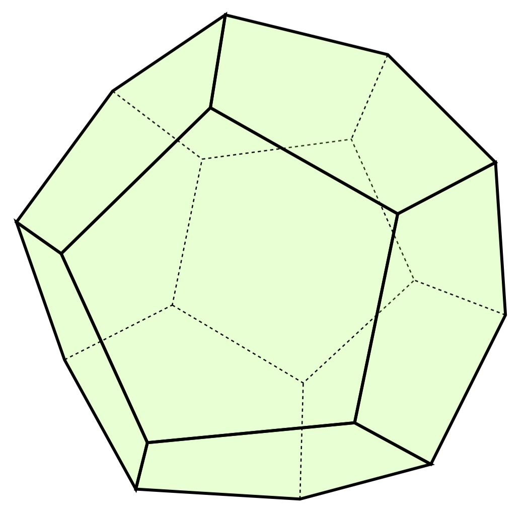 En dodekaeder är en tredimensionell figur med 12 sidor, uppbyggd av 12 liksidiga pentagoner. Alla pentagoner är lika stora och alla kanter lika långa! Kan du komma på när en dodekaeder används i vårt vardagliga liv?